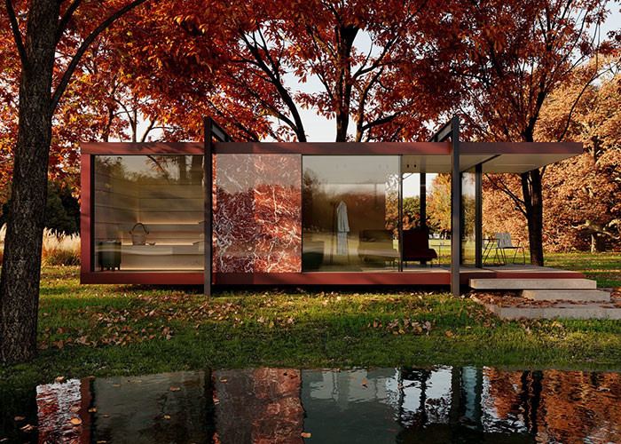 کلبه روی آب پیشساخته با قاب فولادی سبک، خانه گنبدی با قاب فولادی سبک از جنس کابین
