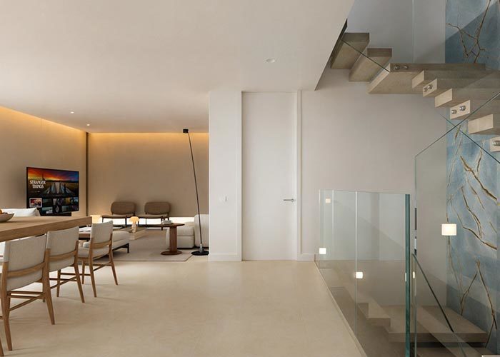 The Malmo House defines contemporary elegance through its striking use of expansive floor-to-ceiling glass windows and a clean, minimalist exterior.