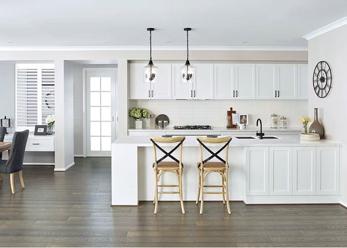 قلب خانه یک آشپزخانه با طرح باز است که به طور یکپارچه به منطقه غذاخوری میرود. این فضا برای وعدههای غذایی روزانه و دورهمیهای غیررسمی عالی است. از منطقه غذاخوری، درهای کشویی آلومینیومی ظریف باز میشوند تا یک نکته برجسته واقعی را نشان دهند: یک اتاق بیرونی سرپوشیده. این فضای همهکاره به راحتی فضای زندگی شما را گسترش میدهد، ایدهآل برای لذت بردن در تمام طول سال، از قهوه صبحگاهی تا سرگرمیهای عصرانه.