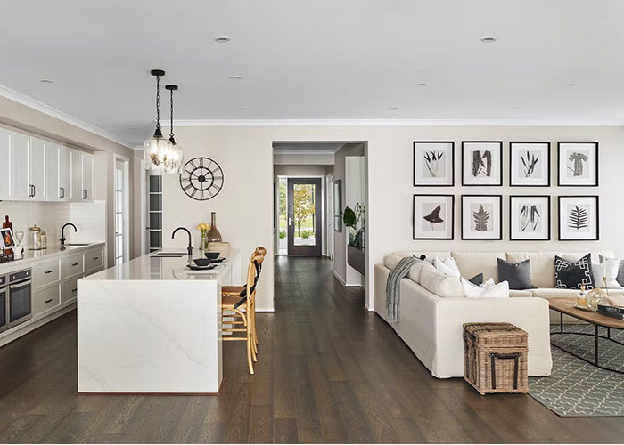 اتاق نشیمن که در پشت خانه برای آرامش بیشتر قرار دارد، یک پناهگاه دنج و جداگانه برای استراحت و گذراندن وقت با خانواده فراهم میکند. تکمیل طرحبندی عملی، یک گاراژ دو ماشین راحت در سمت راست ملک قرار دارد.