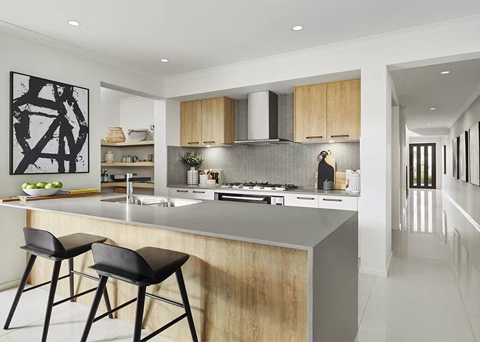 مرکز خانه به یک آشپزخانه باز متصل به منطقه ناهار خوری باز می شود. این فضا برای آشپزی روزانه و وعده های غذایی مشترک طراحی شده است.با یک جریان آسان که مناسب هر دو روال روزمره و گردهمایی با دوستان یا خانواده استاز منطقه غذاخوری، درهای کشویی آلومینیومی بزرگ به طور مستقیم به یک اتاق بیرونی منجر می شوند، فضای زندگی را در خارج از خانه گسترش می دهند و یک انتقال صاف بین زندگی در داخل و خارج از خانه ایجاد می کنند.